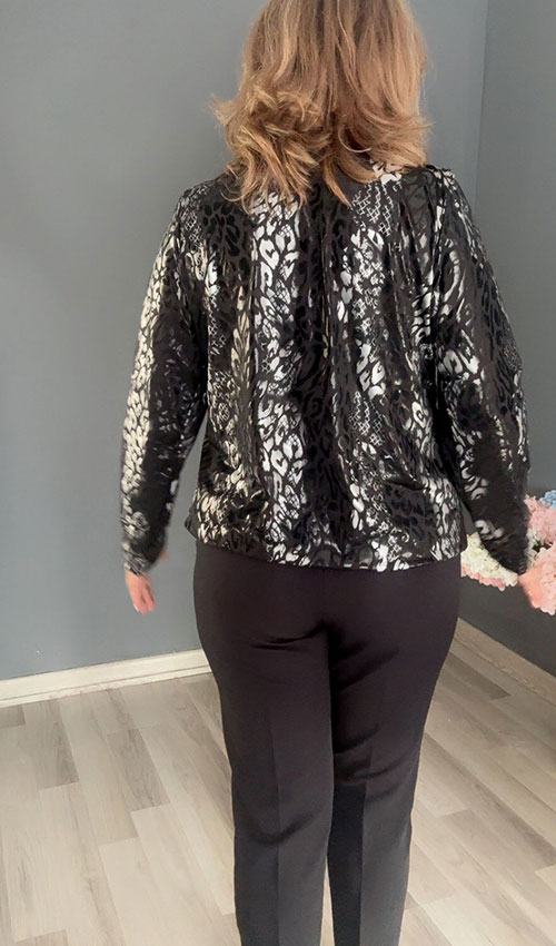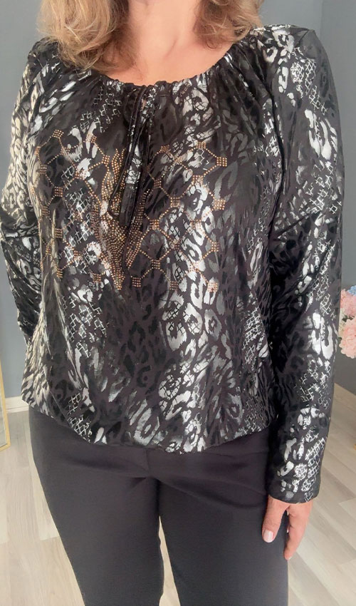 Desenli Siyah Ön İpli Bluz
