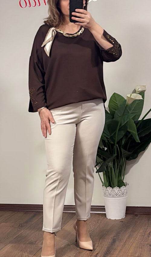 Yaka Kolye Ve Fular Akesuarlı Bluz