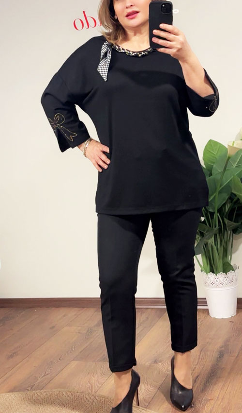 Manken 1,60 boy 58 kilo 1 beden giymiştir. Bedenler 42 bedenden 48 beden kadar uyumludur