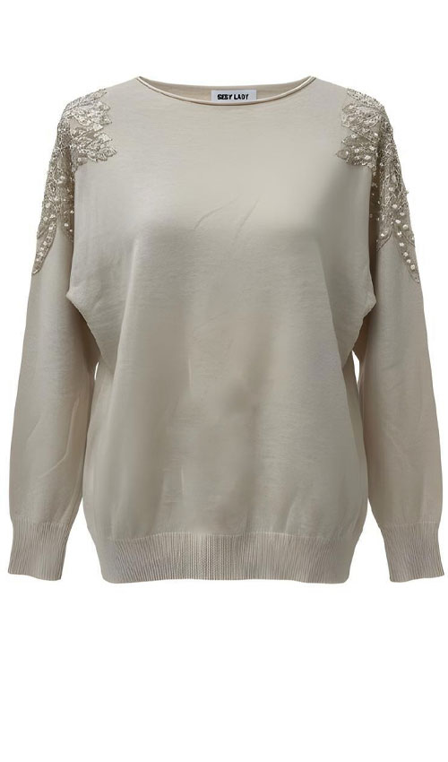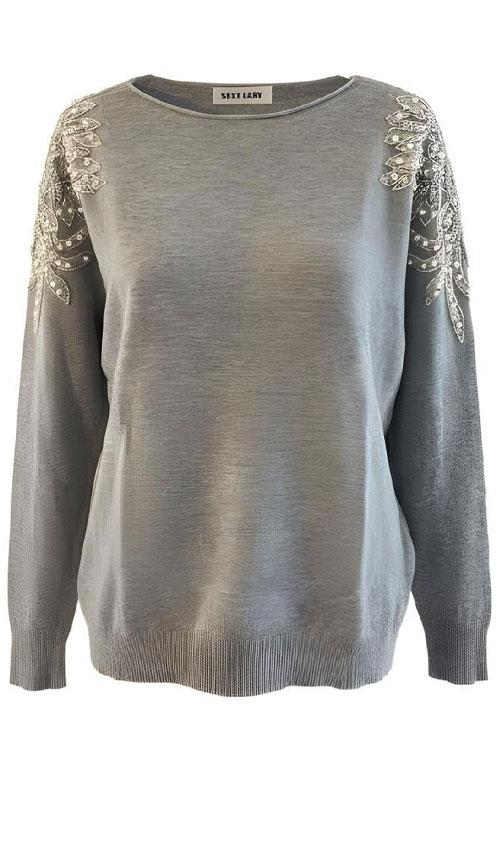 Omuz Aplikeli İnci ve Boncuk Detaylı Triko Kazak