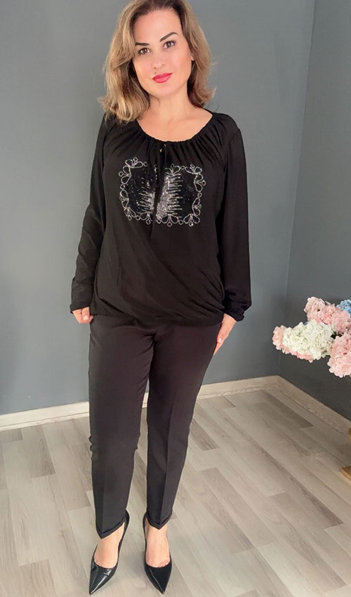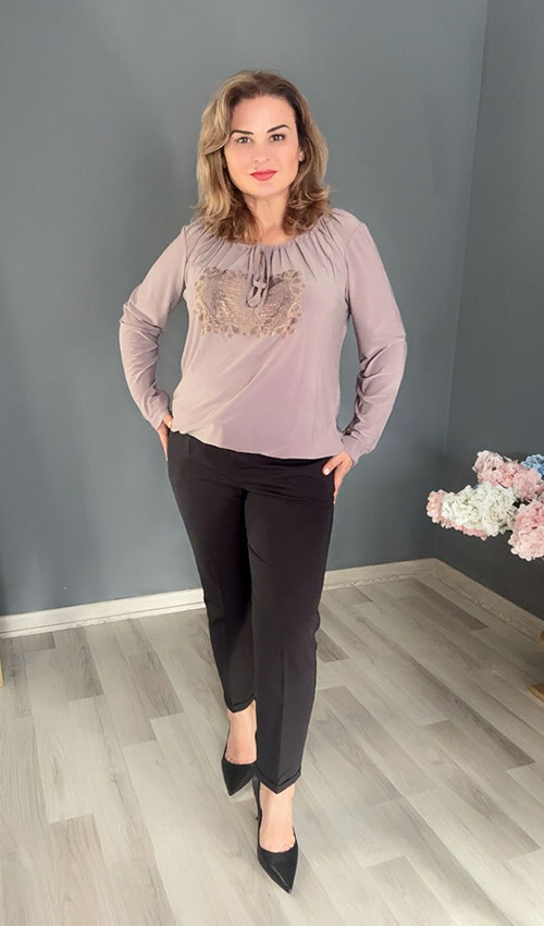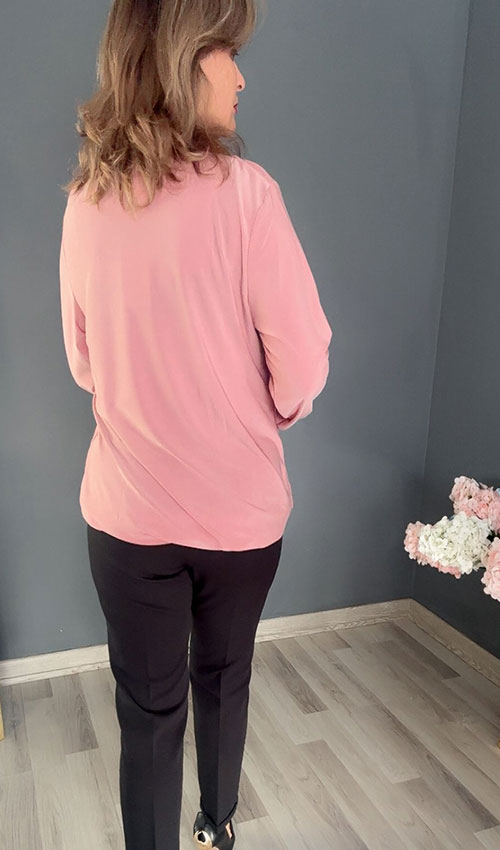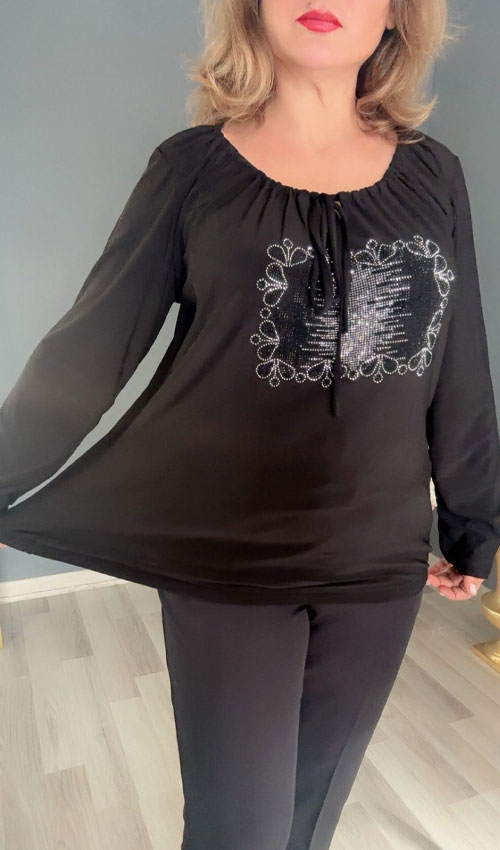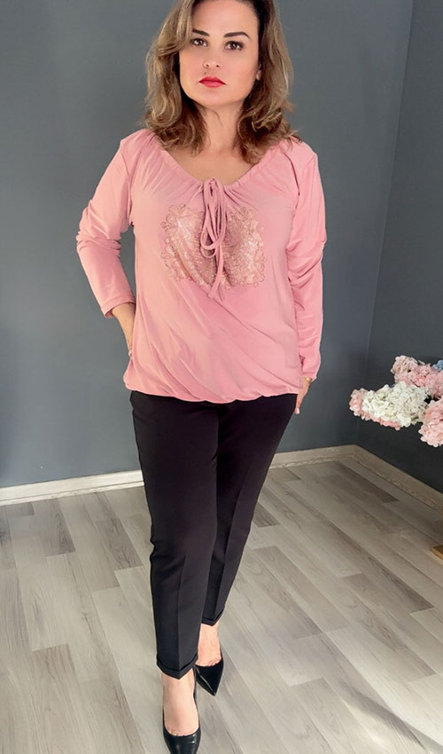Ön Taş Detaylı Yaka Büzgülü Bluz
