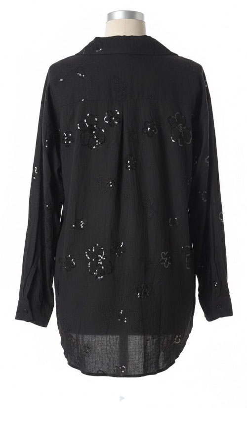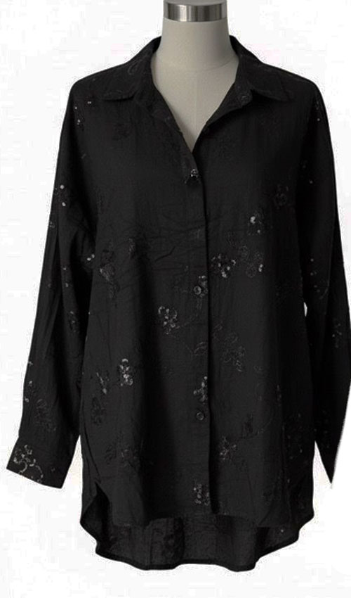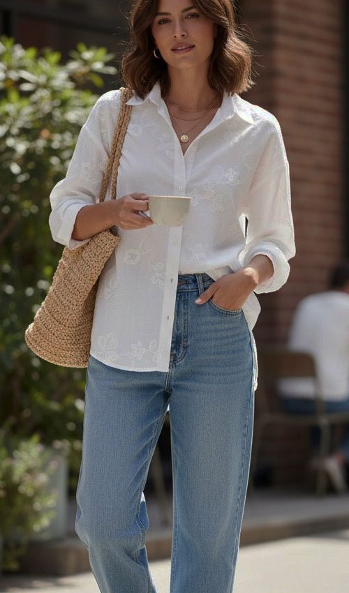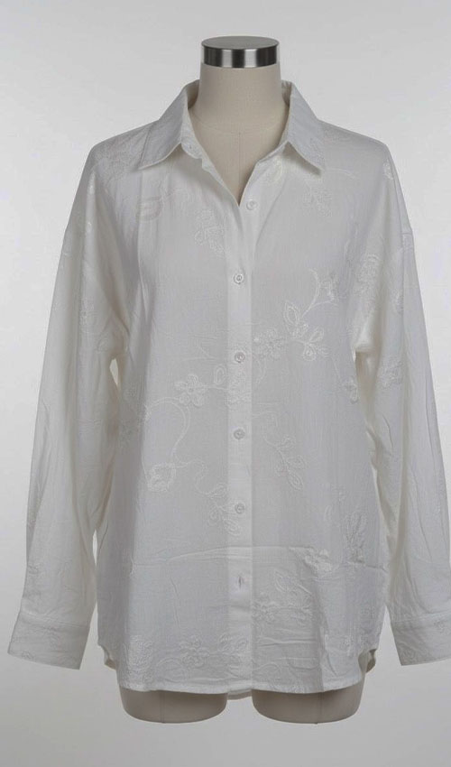 Ton-Sür-Ton Çiçek Desenli Nakışlı Gömlek