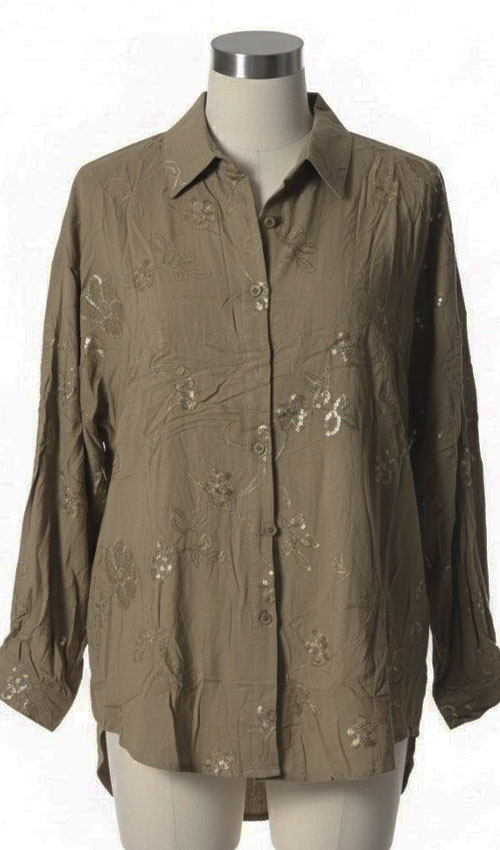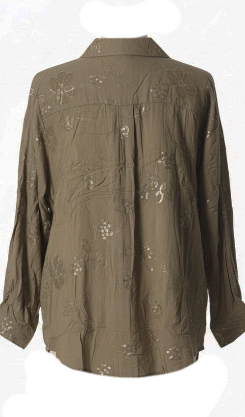 Ton-Sür-Ton Çiçek desenli Nakışlı Gömlek