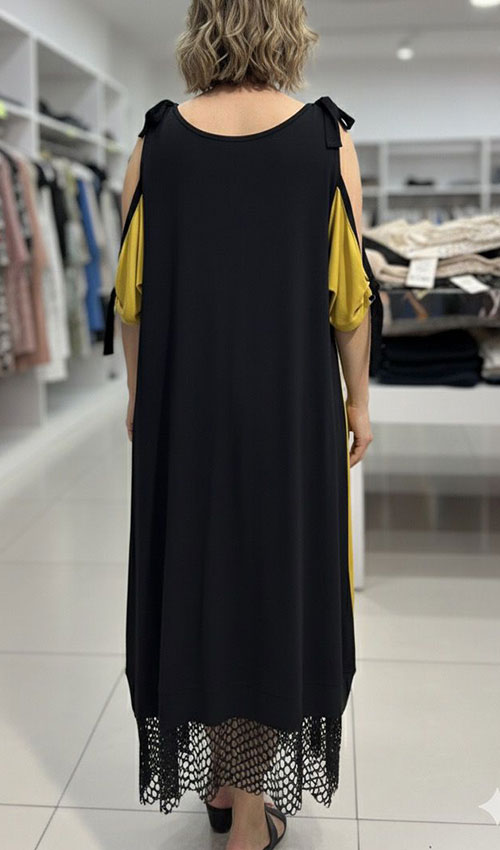 FİLE UÇLU KOL DETAYLI HARDAL ELBİSE