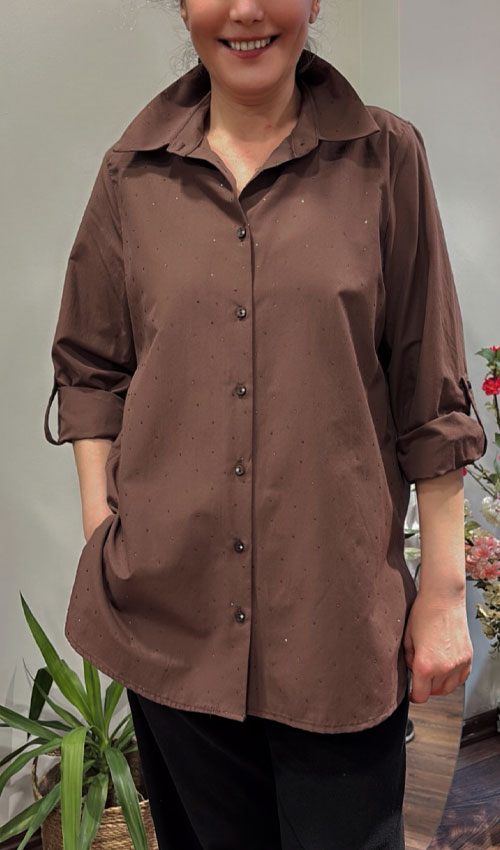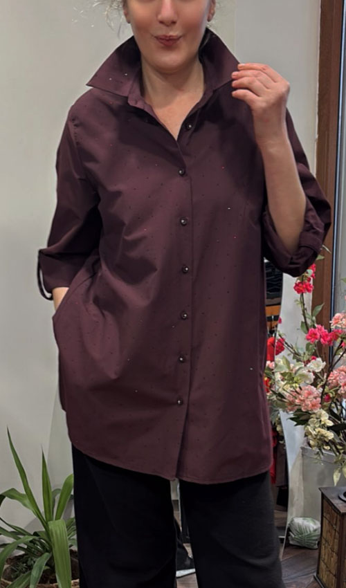 Gömleğimiz minimal l Işıltı detayıyla sade görünümüne zarif bir hareket katıyor