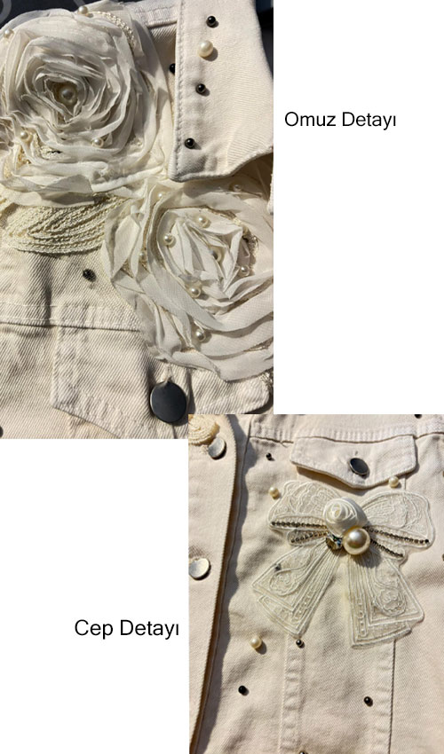 Ön İnci Çakma Detaylar ve Omuz çiçeklerle süslendirilmiş