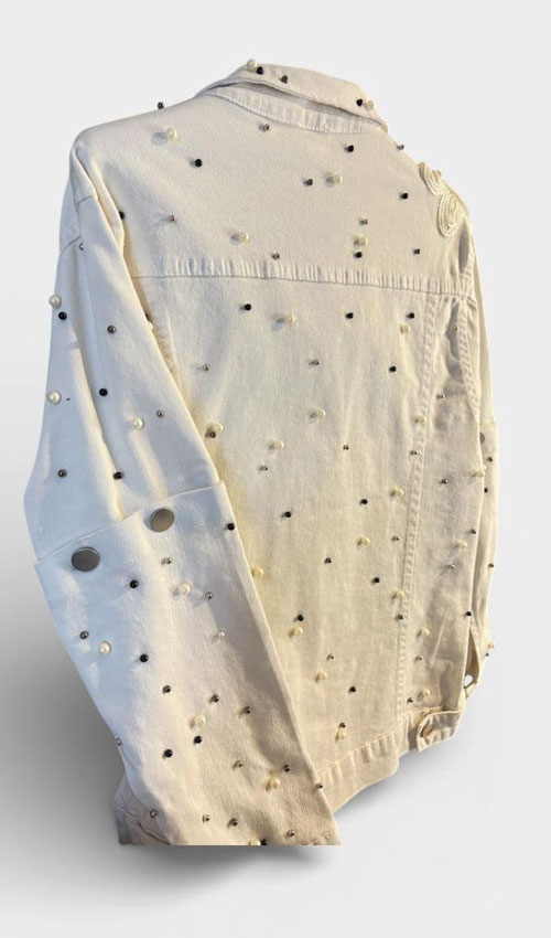 Likrlaı Pamuklıu Ceket Ekru Renk Kollar Düğmeli çıkartılabiir kol. Yazın Yarım kol olarak da kullanılabilir.
