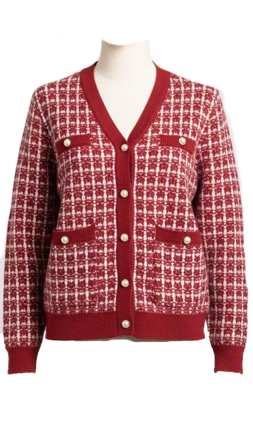 İnci Düğme Detaylı V Yaka Hırka / Ceket