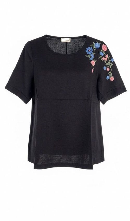 Yaka Puanteli Tül Deataylı Likralı Viskon Penye Bluz