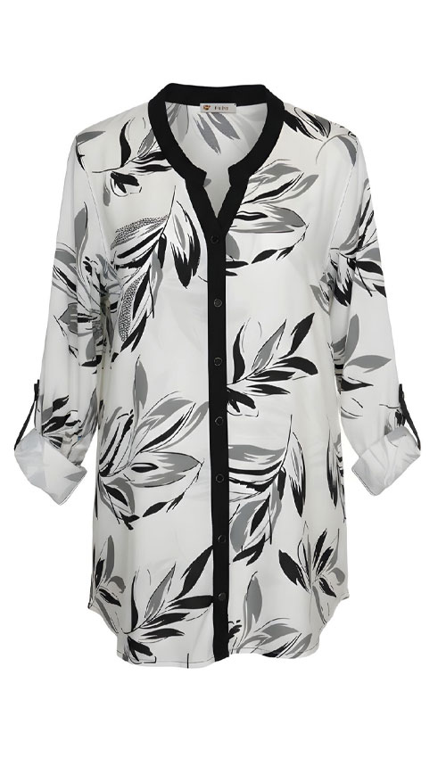 Yaprak Baskılı Düğmeli Bluz Tunik